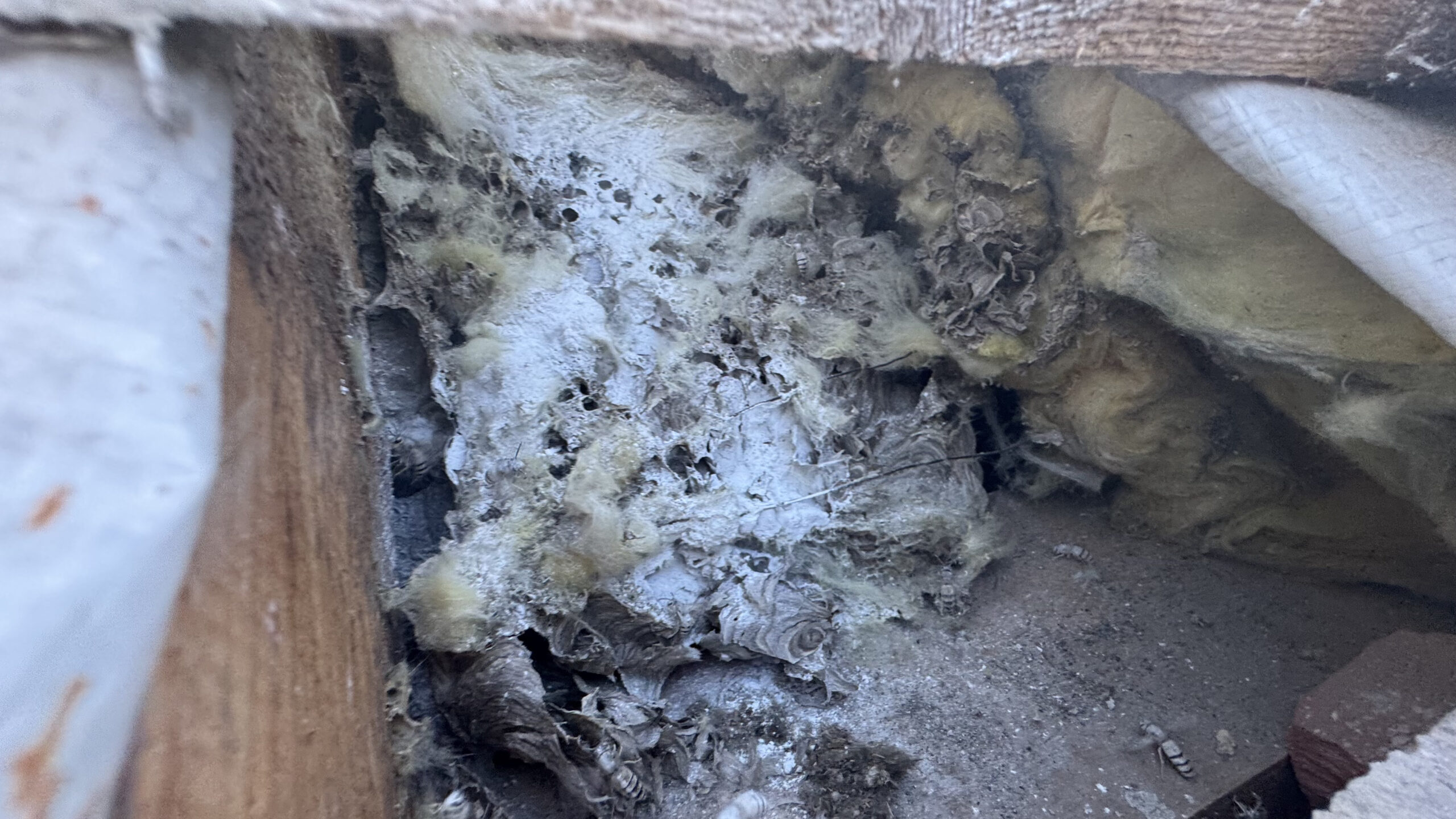 Ha falban, szigetelésben, zárt üregben van → az elhalt fészket bent hagyjuk, mert: